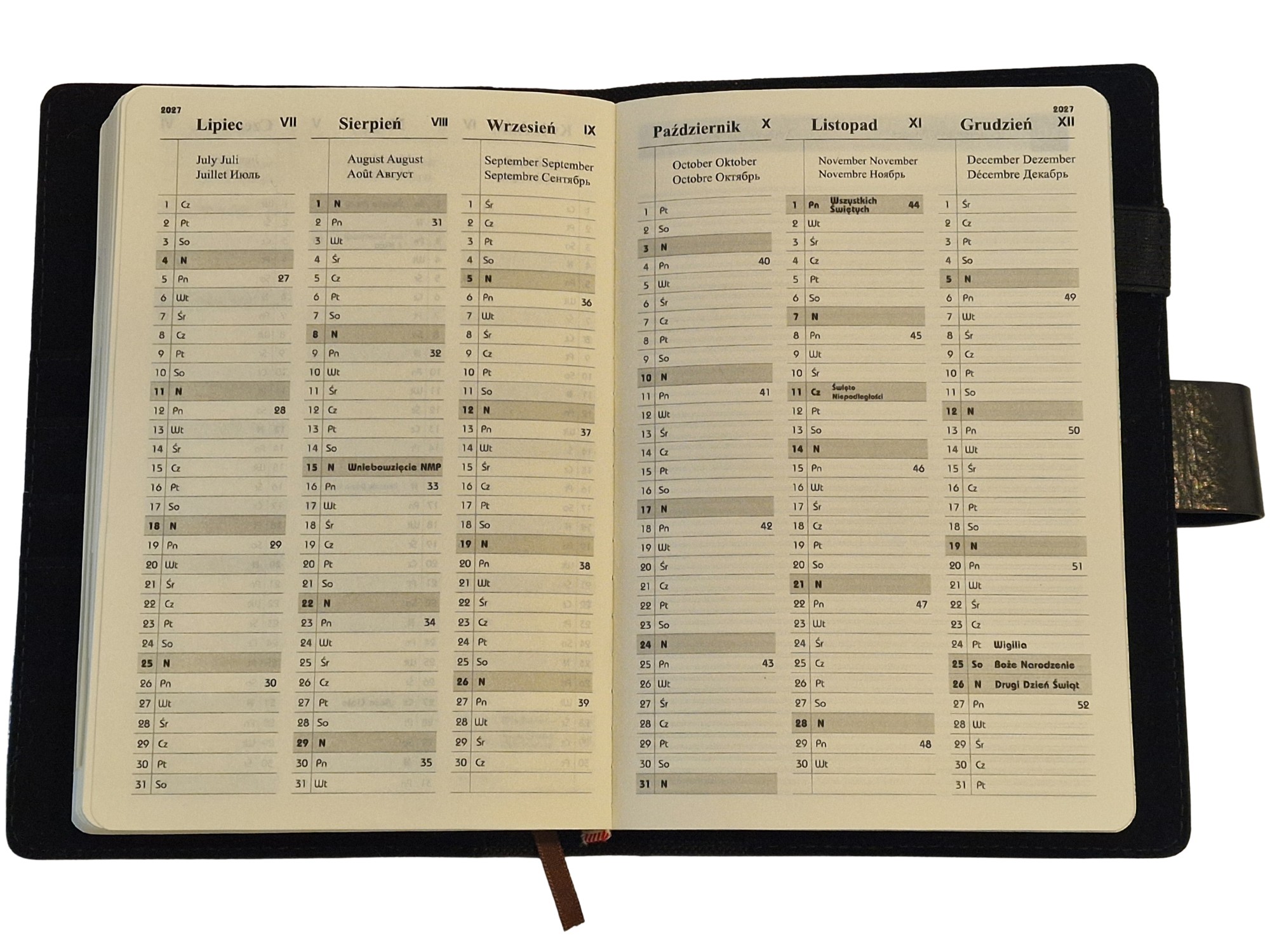 Kalendarz posiada 162 stron układ tygodniowy.