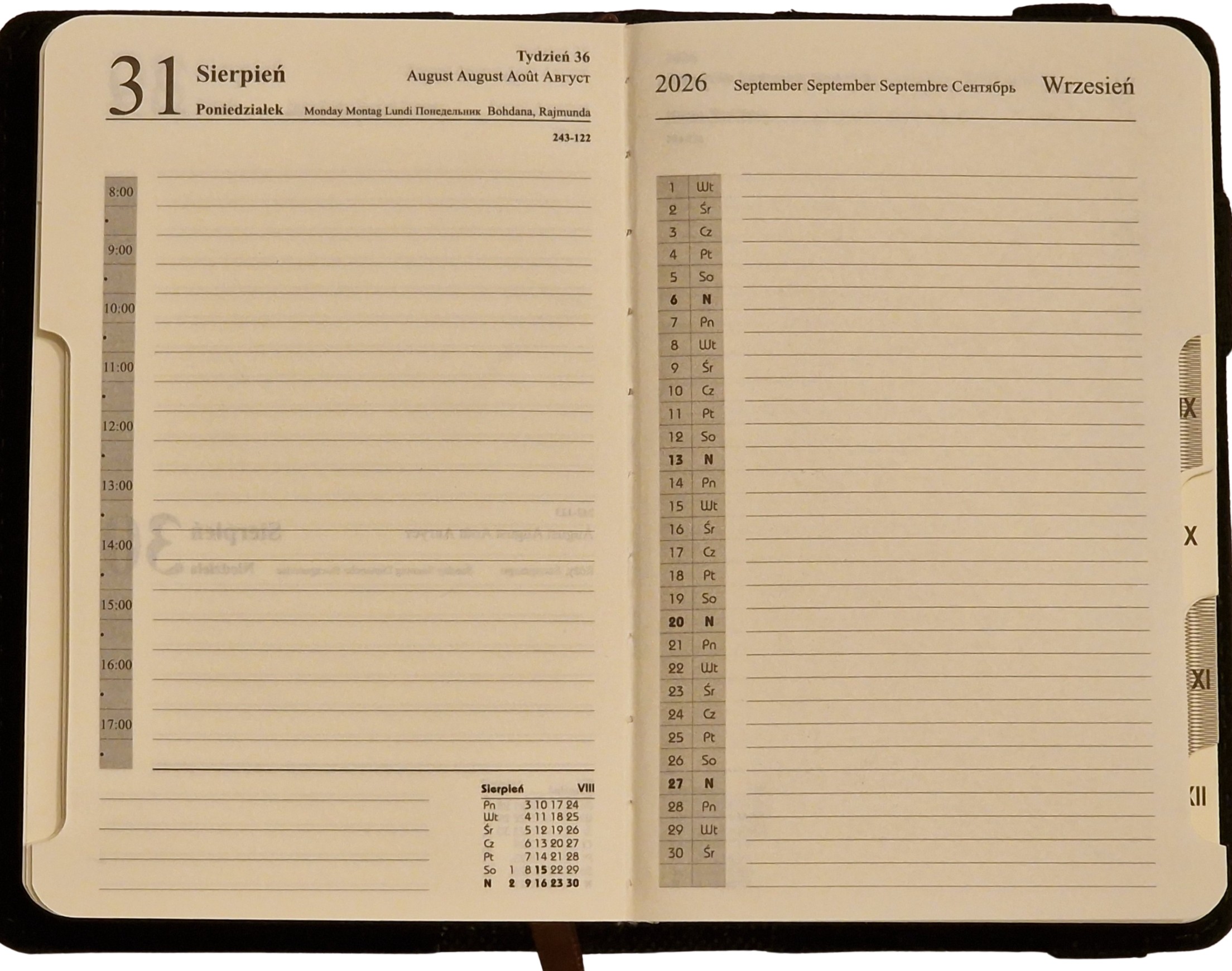 Kalendarz Książkowy Dzienny Granatowy A6 z Wymiennym Wkładem 2026r