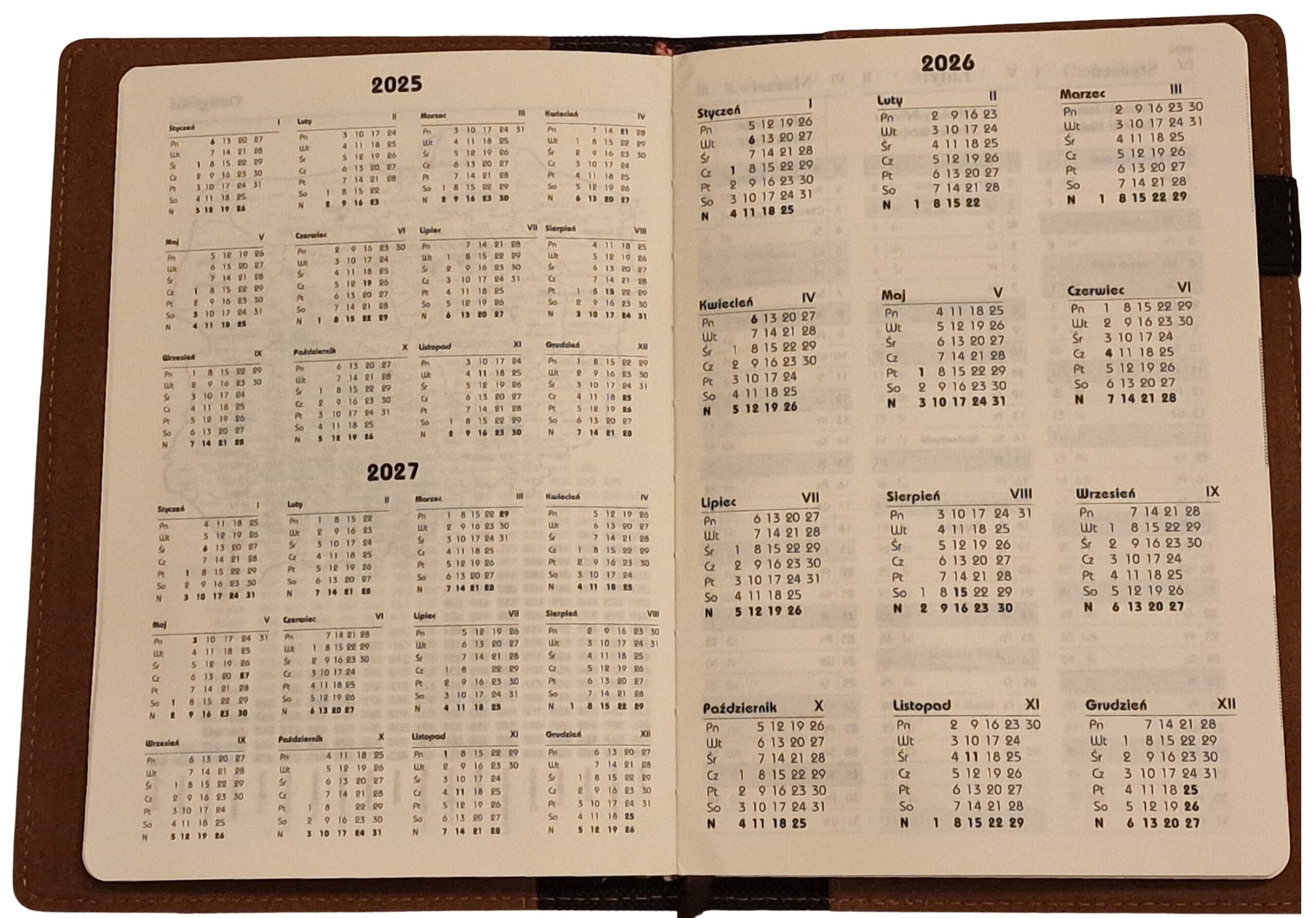 - Dodatkowe strony z planem miesięcznym na początku roku bieżącego (2025).