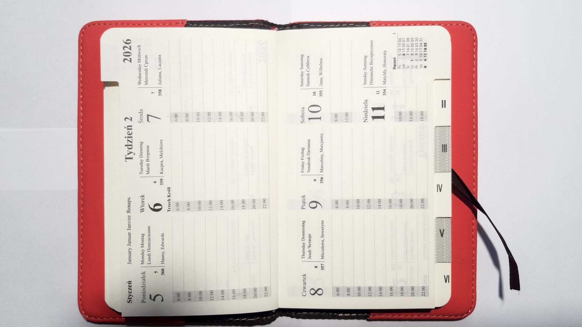 Kalendarz tygodniowy A6 kolekcja SAMP40 żółta z czerwonym pasem okładka bez zapięcia KT-60SAMP40/ZOL-CZE/Z