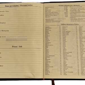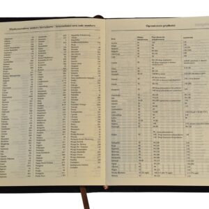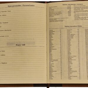- Specyfikacja: Okładka:Rozmiar - 15x22 cm, zbliżony do A5,Okładka - sztywna, (dodatkowo usztywniona), Zewnętrzna strona okładki - Gąbka EVA, miękka w dotyku,Oprawa okładki - Ekoskóra, dwuwarstwowy poliuretan,Wykończenie okładki - podwójna krawędź, Wnętrze okładki - miękkie w dotyku wykończenie,W wybranych modelach - kieszenie wewnętrzne,Wewnątrz - uchwyt na długopis,Zapięcie - na gumkę. Wkład:Rozmiar - 14,2x20,5 cm, zbliżony do A5,Rodzaj wkładu - wymienny, pasujący do rozmiaru okładki,Papier - Chamois wysokiej jakości 70 g/m2,Ilość stron - 162 stron,Rodzaj bloku - zaokrąglone rogi,Układ kalendarza - tygodniowy,Separator - wstążka,Registry - wycinane,Język kalendarza - Polski,Dodatkowe języki - GB/D/F/RUS,Mapy - Kolorowe, administracyjne Polski i Europy (dotyczy KD-25(A5), KT-25(A5)…